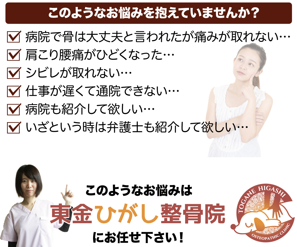 病院や整形外科による治療内容でご満足できていない、あるいは改善がみられないなどがあるようでしたら