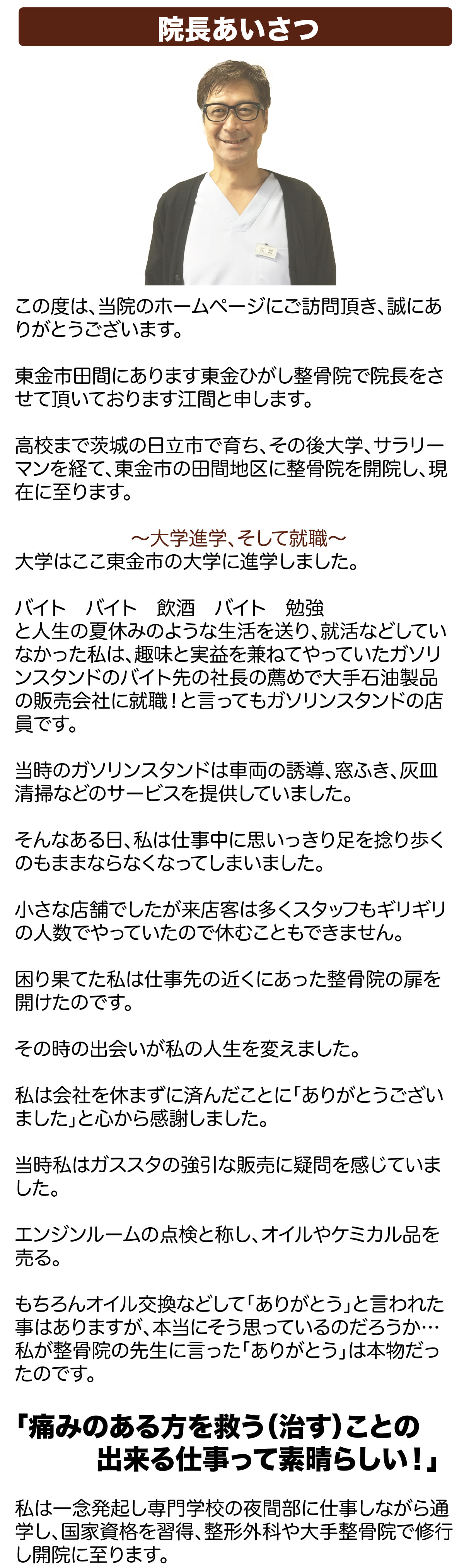 東金ひがし整骨院 院長あいさつ